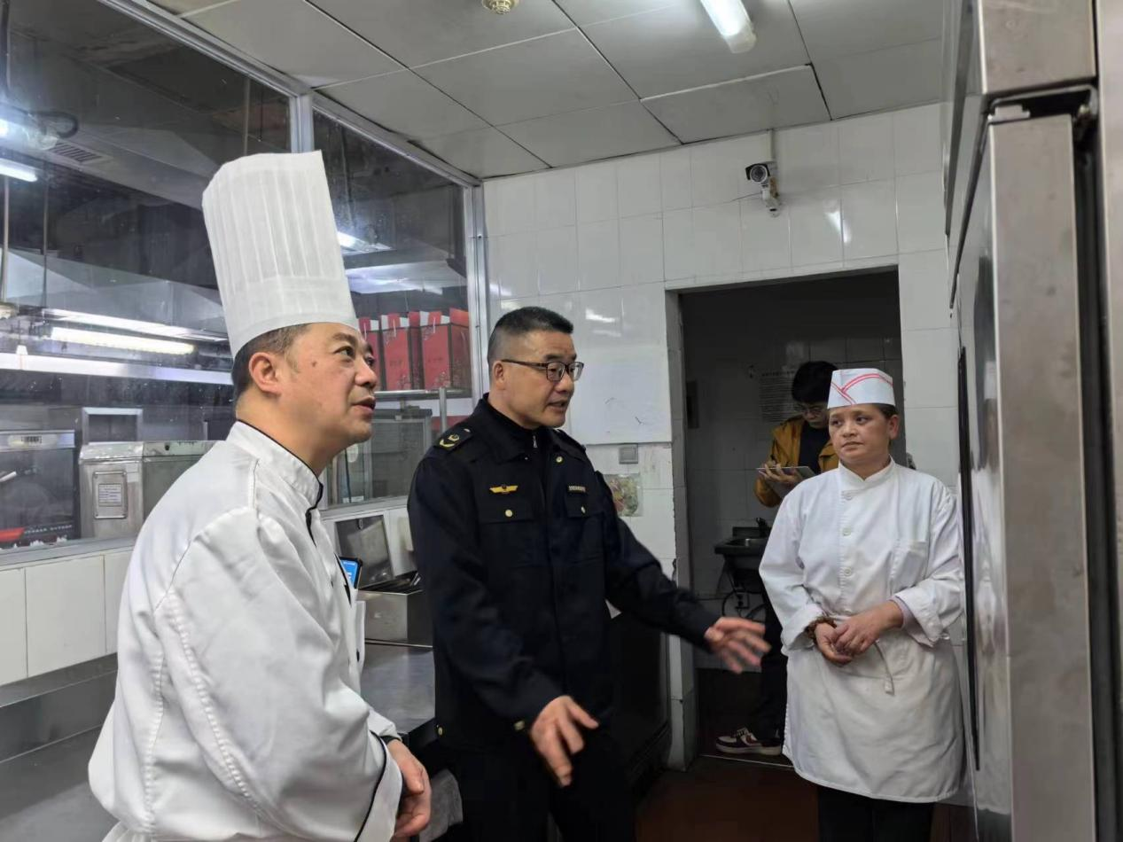 提前介入,纠正问题。收到保障任务后,七星区市场监督管理局立即成立专班保障组,前往桂山华星酒店开展检查;主动与工作组织方就菜单注意事项进行沟通,确保不提供重大活动禁用、慎用食品类别;检查过程中针对后厨卫生情况、人员管理制度、食材保鲜情况等进行一一指导,与酒店管理方针对发现问题立即下达责令,对整改问题进行回头看,防止问题现象反弹。