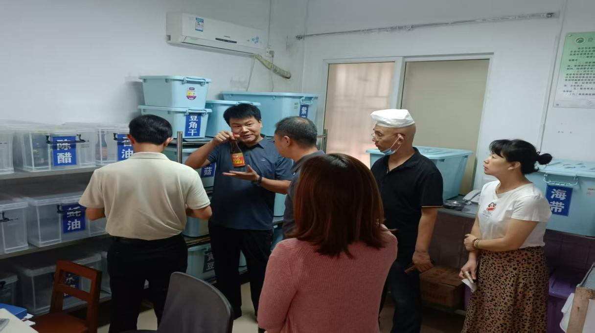在食品加工操作间,检查组聚焦生熟食品分区加工等关键卫生环节,对食材处理流程进行了核查,并在现场强调,食堂必须建立设备设施常态化清洁维护机制,彻底清除卫生死角,让操作环境始终保持 “清爽”。同时,要求从业人员严格遵循《餐饮服务食品安全操作规范》,从食材预处理、加工制作到成品备餐,全流程落实标准化操作,让食品加工的每一个环节都安全透明、有迹可循。
