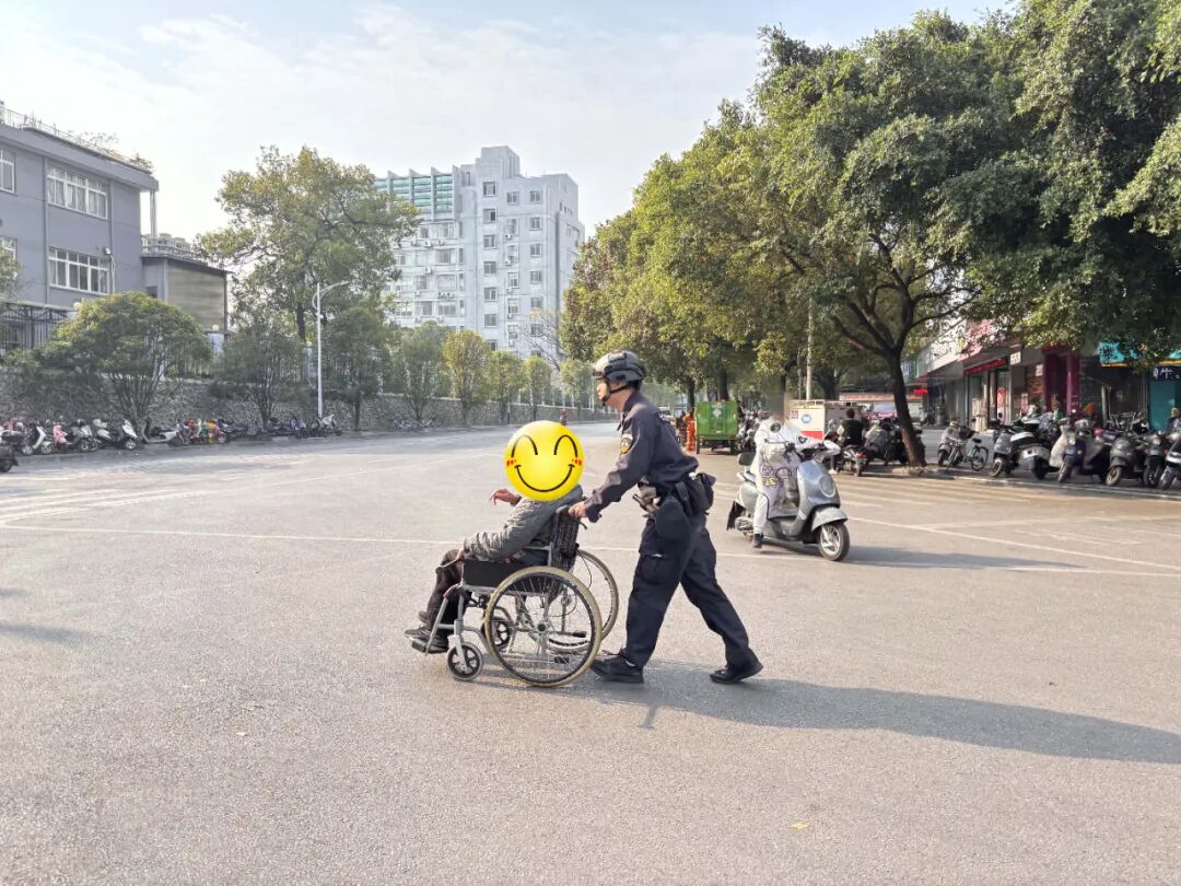 12月4日10时许,七星巡逻大队辅警队员们在辖区巡逻时,在半塘尾发现一名老人倒在路边,旁边停放着一辆手推轮椅,执勤辅警王蒙强见状立即上前施救,合力将老人搀扶起来坐上轮椅,并询问老人是否受伤。