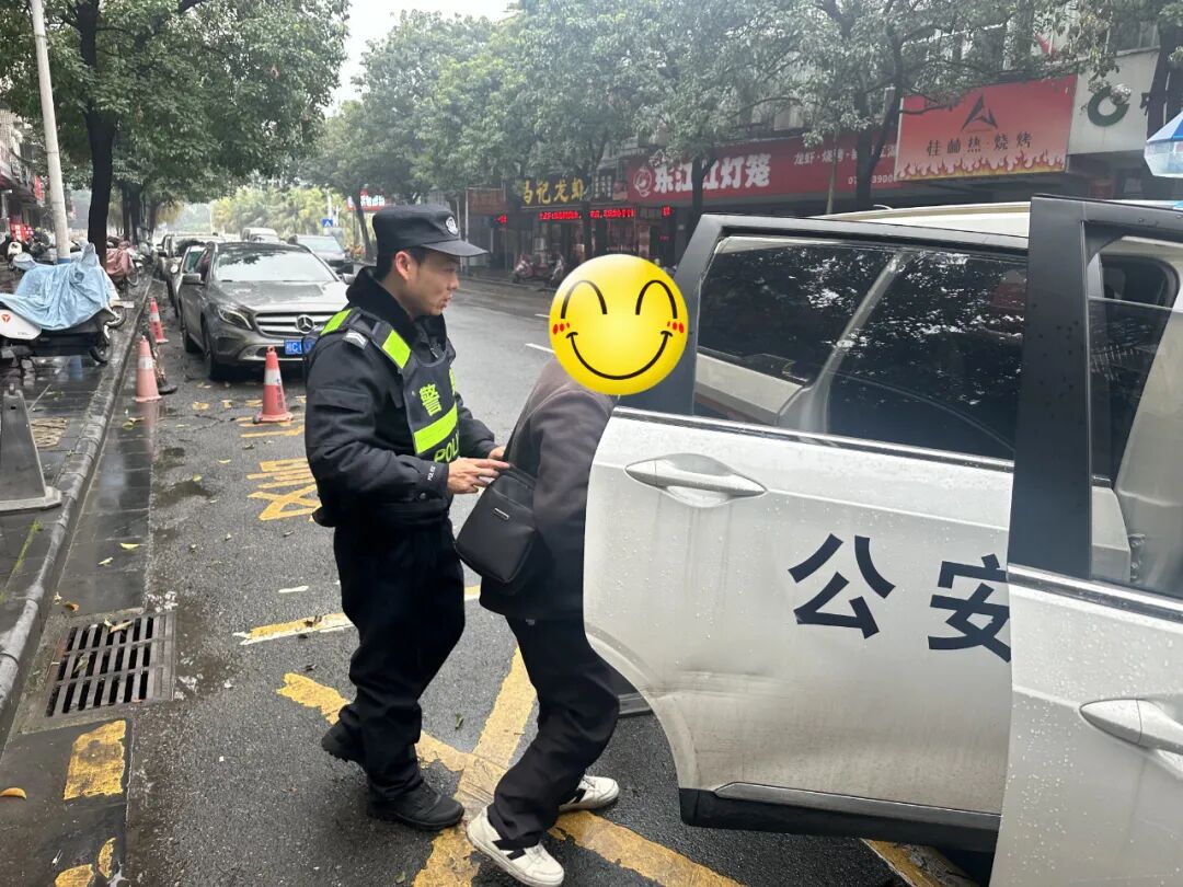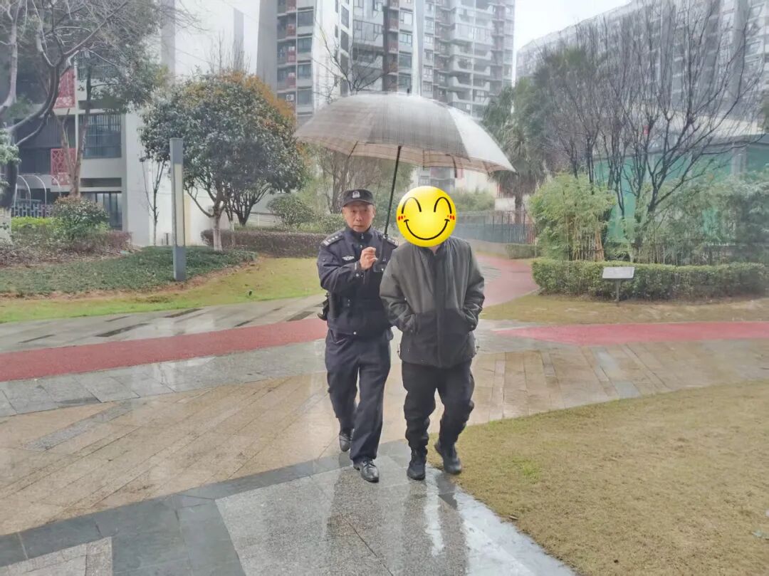考虑到雨天路滑以及老人身体状况,丁志强驱车将腿脚不便的老人送至小区。经与物业工作人员沟通后确认了具体住址,丁志强便搀扶老人将其安全送回了家。