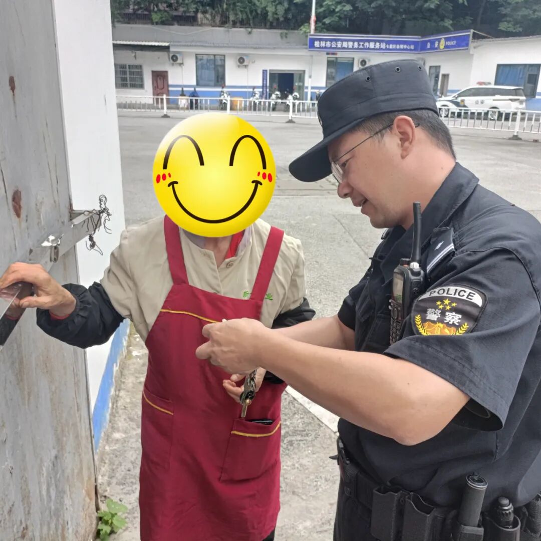 5月30日16时许,巡逻大队民警余海龙准备带领辅警前往辖区开展巡逻任务时,遇到廖大姐求助称,保洁仓库的锁头老化生锈,一直无法打开,导致其和同事的工作无法正常开展,希望民警能够提供帮助。