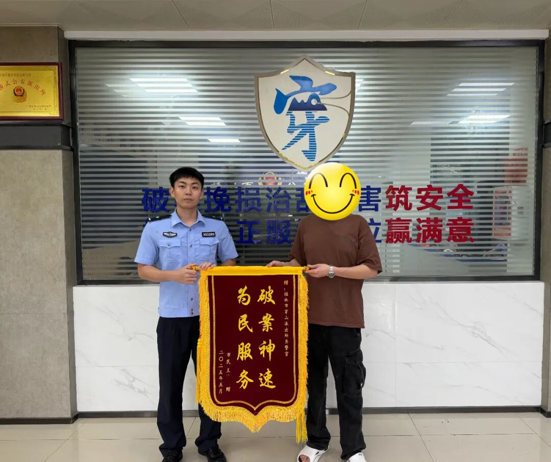 6月1日16时许,王先生来到穿山派出所将一面印有“破案神速,为民服务”的锦旗送到民警手中,字里行间里,透露着对民警工作的认可和感谢。