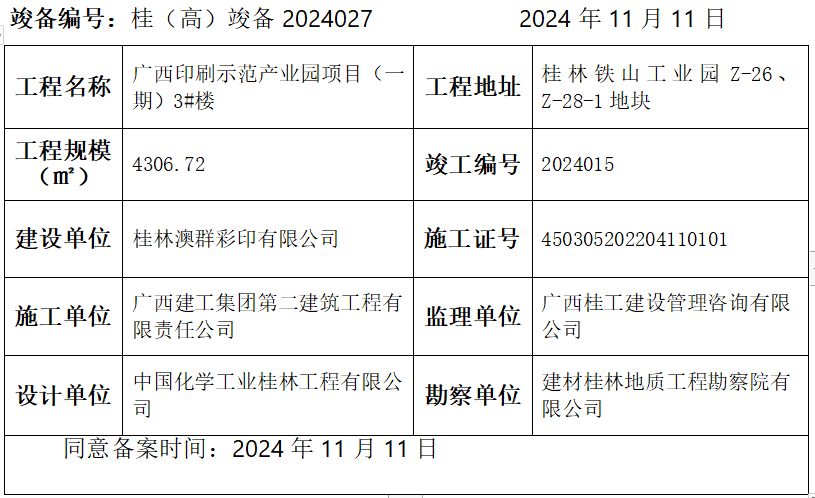 桂(高)竣备2024027 广西印刷示范产业园项目(一期)3#楼