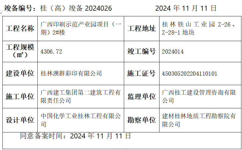 桂(高)竣备2024026 广西印刷示范产业园项目(一期)2#楼
