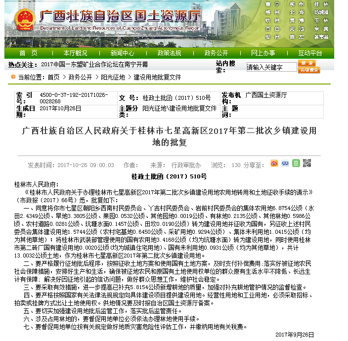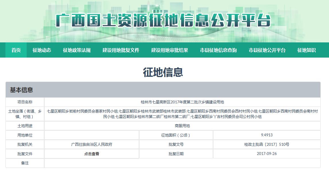 桂林高新区七星区2017年度第二批次乡镇建设用地
