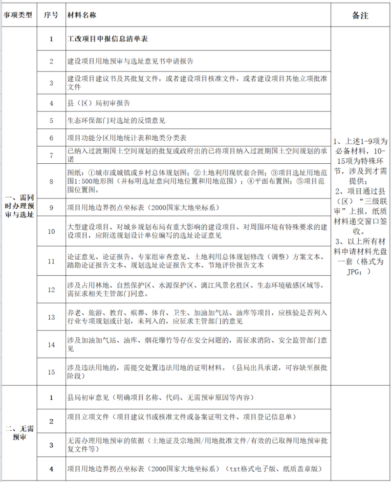 建设项目用地预审与选址意见书收件清单(各县(区)报市级)