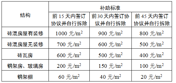 (三)在规定时限内搬迁完毕交出钥匙的,可增加200元/平方米自拆补助(不含钢架棚)。