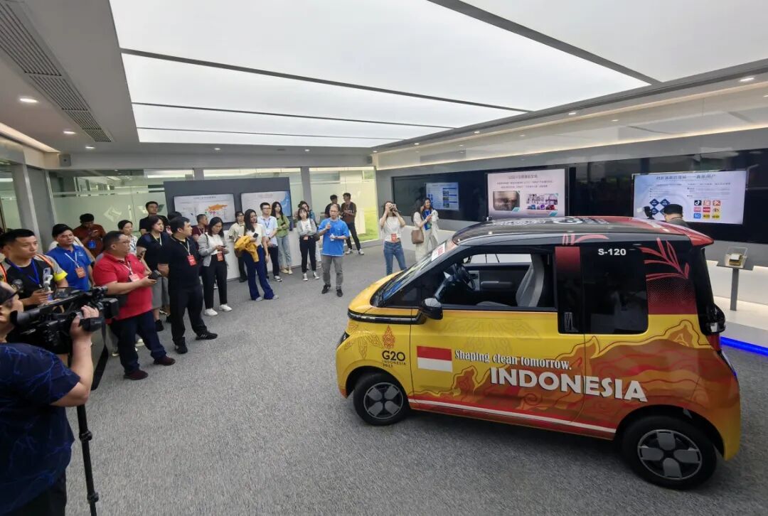 资料图片:东盟国家媒体记者在上汽通用五菱公司了解广西新能源汽车研发生产情况。广西云-广西日报记者 徐天保 摄