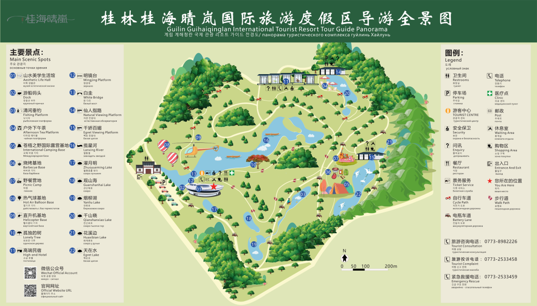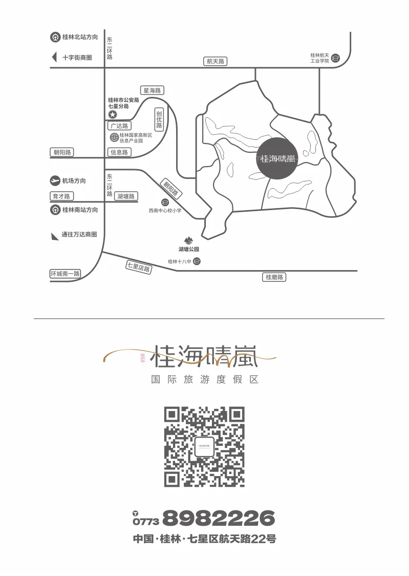 桂海晴岚国际旅游度假区位于桂林市七星区航天路22号,占地面积为2.29平方公里。毗邻国家4A级景区尧山,依托得天独厚的自然风光,打造以艺术文化为核心的休闲度假综合体。