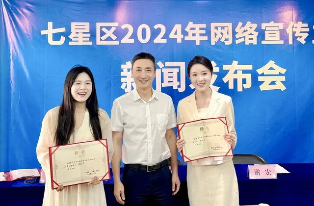 发布会上,七星区还聘请了自媒体达人“橙子同学”负责人陈梓担任“2024年七星美好推荐官”,英才小学黄媛老师担任“2024年七星区形象大使””,她们将一起带领广大网民、市民朋友们一起参与到七星区丰富的线上线下活动中,领略七星区不一样的山水人文风情。