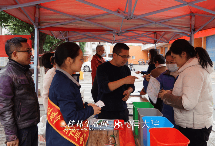 3月23日下午,桂林市环境卫生管理处党委组织各基层党支部党员志愿者与象山区环卫站、七星区环卫站开展垃圾分类宣传活动。