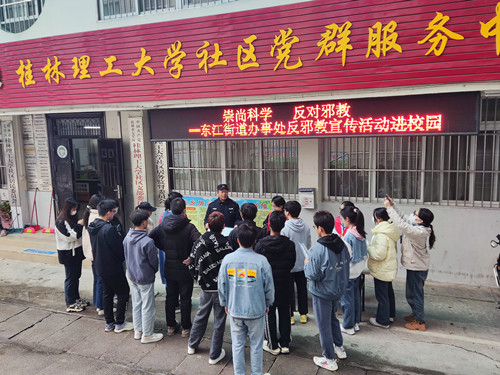 为深入开展法治校园宣传,提高广大学生的法治观念和自我保护意识,近日,理工大学社区邀请东江派出所民警走进桂林理工大学,开展以“普法宣传进社区 同心护未来”为主题的法治宣传教育活动。