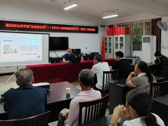 《中华人民共和国民法典》是增进人民福祉,维护广大人民群众利益的法律武器,是与人民群众生活息息相关的生活百科全书。小区是基层社会治理的基本单元,物业服务更是涉及千家万户,为让《中华人民共和国民法典》更好地走到群众身边、走进群众心里,近日,七星司法所、施家园社区组织辖区各小区业主委员会成员、物业服务公司负责人开展了“法律进社区”——《中华人民共和国民法典》(物权)普法讲座。