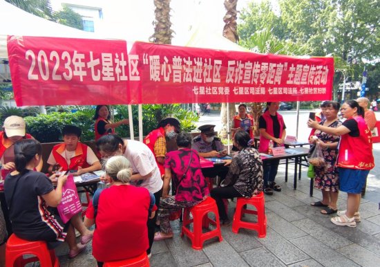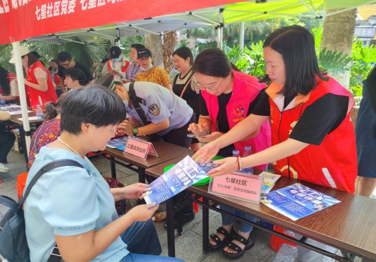 为进一步推动全民学法、知法、懂法、守法,增强辖区群众防诈、反诈意识和能力,预防和打击电信网络诈骗违法犯罪活动,切实保护群众财产安全,9月1日上午,七星社区党委、妇联联合七星区司法局、七星区发改局、七星司法所、三里店派出所、中国电信股份有限公司桂林高新七星区分公司等单位开展了一场别开生面的反电信诈骗暨普法主题宣传活动。