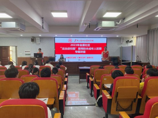 为进一步增强未成年人法律意识、安全防范意识和自我保护意识,创建平安、文明、和谐的校园环境,近日,七星区司法局、七星司法所、金星社区走进广西二轻工业管理学校开展了一场精彩生动的法治讲座。