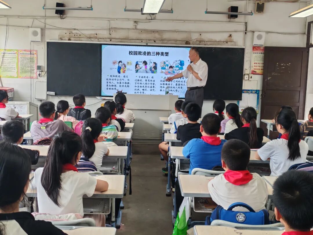 活动特别邀请了七星区“五老”宣讲员廖明东和魏东两位资深法律专家担任主讲嘉宾。廖明东和魏东两位专家针对少年儿童的年龄特点和心理状况,凭借丰富的法律知识和经验,详细阐述了校园欺凌的定义、危害以及法律后果,并结合实际案例,向在场学生传授了预防和应对校园欺凌的有效方法。