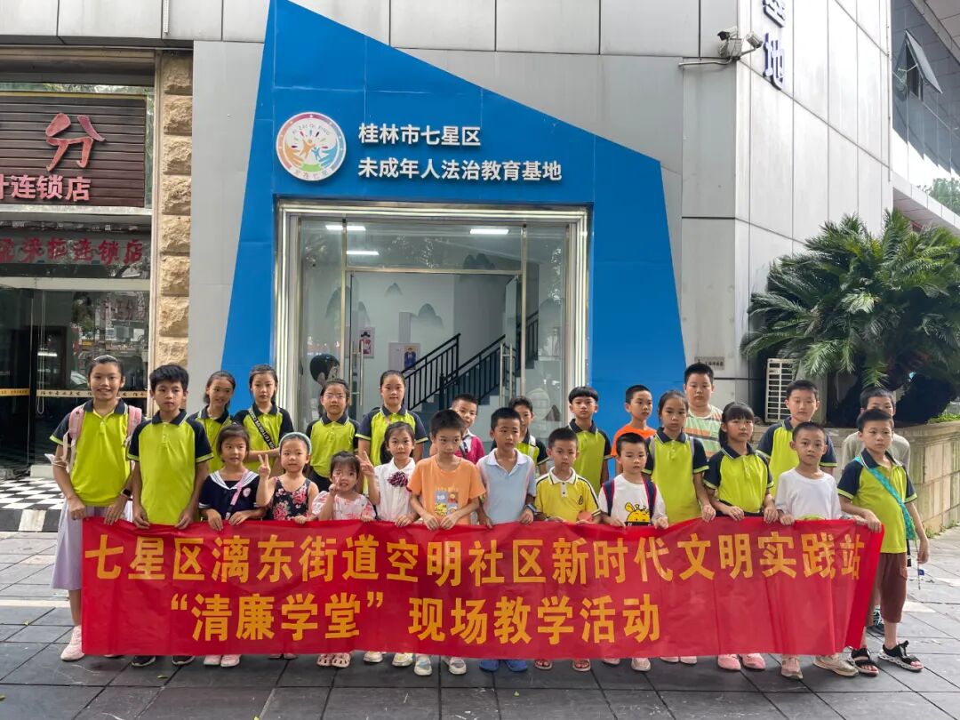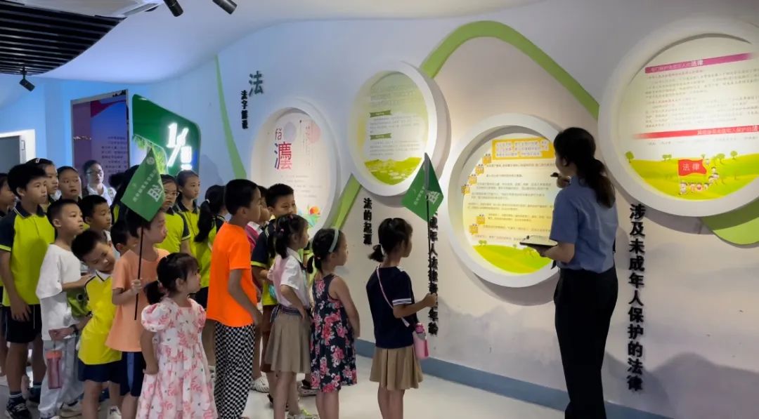 8月2日上午,漓东街道空明社区联合“享”家家庭教育团队共同举办的“行走的课堂”研学之旅来到了第三站——七星区未成年人保护基地之法治教育区。来自育才小学、石油小学、桂林中学的60余位学生及家长们在七星区人民检察院检察官的带领下到馆内进行参观学习。