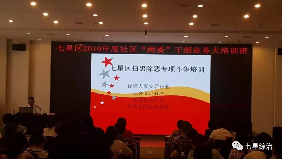 8月8日上午,七星区举办2019年度社区“两委”干部业务培训班,七星区委政法委副书记、七星区扫黑办常务副主任孙宏林,对辖区各个村(社区)两委干部100余人进行扫黑除恶斗争业务知识培训。