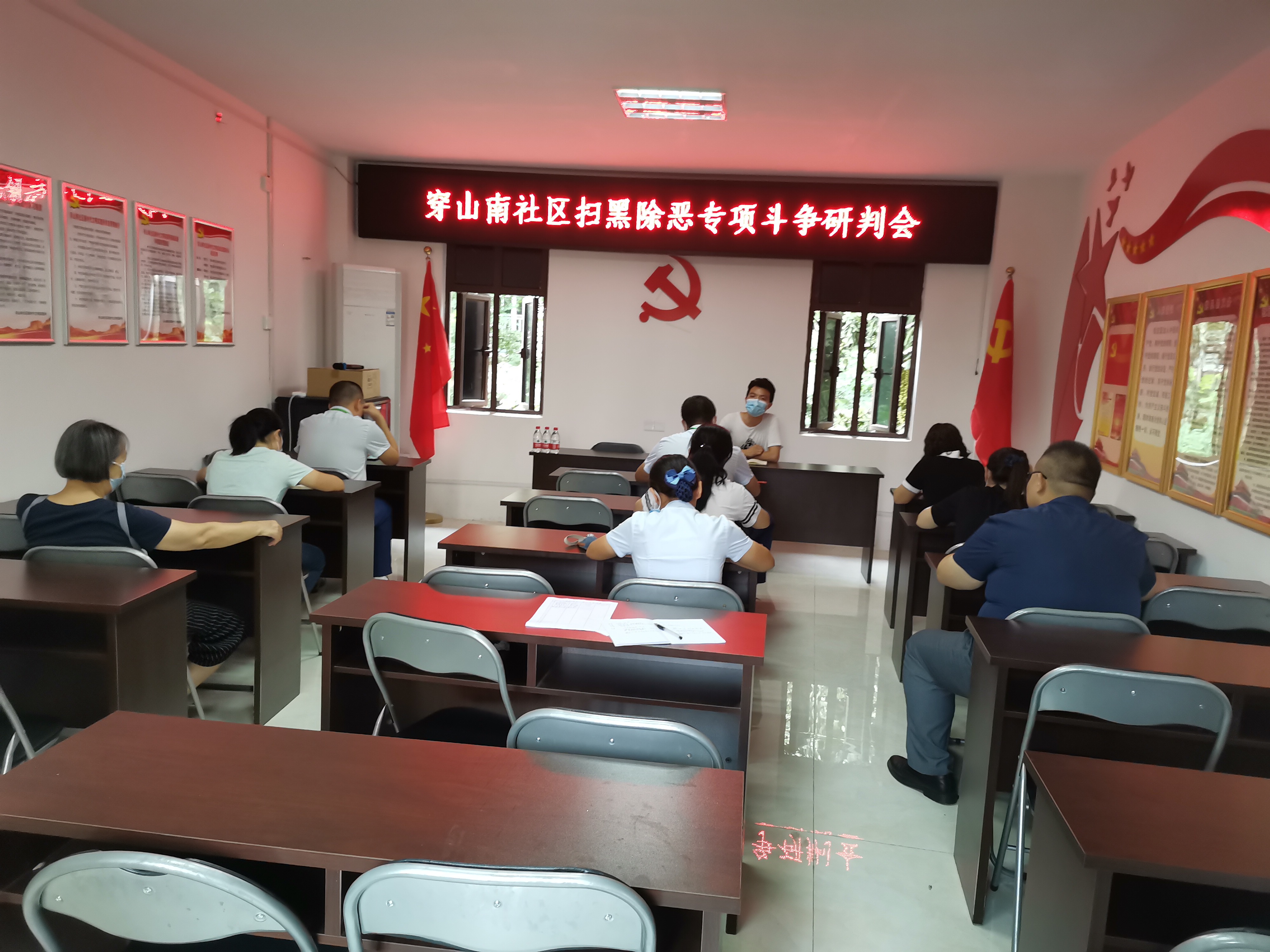 6月18日上午,穿山南社区在社区三楼会议室召开扫黑除恶专项斗争工作研判会,各小区主管、居民小组长、社区工作人员参加研判会。