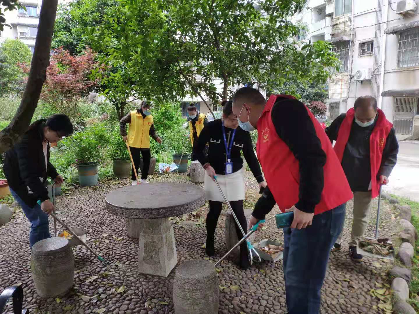 当天一大早,社区干部、街道包点干部、党员志愿者等10余人,对社区周边区域、小区巷道、绿化带、花圃、卫生死角等处进行了集中清理整治,并对居民群众宣传疫情期间要做好垃圾分类,营造良好的联防联控氛围和整洁美观的社区环境,提高居民生活质量。