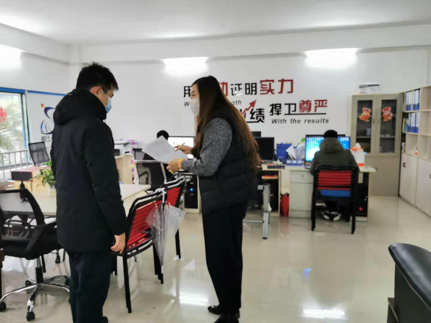 在走访过程中,中心工作人员对企业生产经营情况、疫情防控情况、返岗人员安排情况进行了详细询问,确保企业安全生产;同时,积极向企业负责人宣传戴口罩、勤洗手、定期消毒、多通风等防疫措施,并要求企业做好每日在岗员工及来访人员的登记,加强企业的自我防护意识。