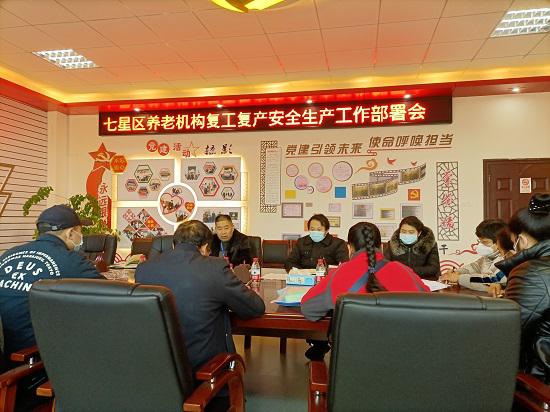 今年是建党100周年,也是“十四五”规划开局之年,为抓好节后企业复工复产和全国两会期间安全防范工作,牢牢守住安全生产底线,有效减控一般性事故,坚决防范遏制较大事故发生,3月4日,七星区民政局组织辖区养老服务机构,召开复工复产安全生产部署会,会议通报了近期各养老机构安全生产检查情况,强调各机构必须牢固树立安全责任意识,持续推进安全生产常态化长效化,重点突出安全隐患的排查和整改工作,保障入住老人的安全。并与各机构法人签订《企业主要负责人确保节后复工复产安全生产承诺书》,进一步压紧压实工作责任。