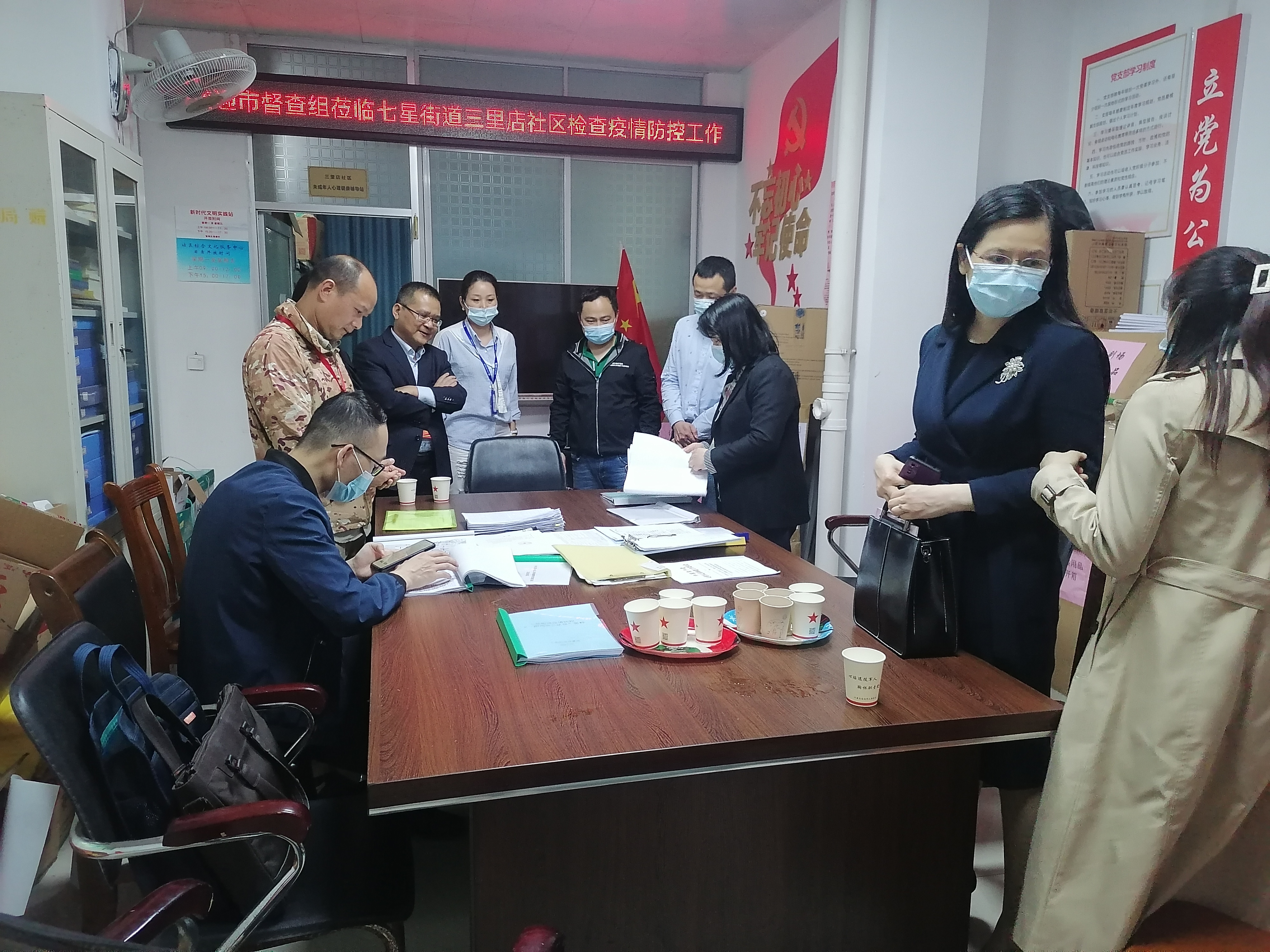 近日,桂林市纪委督查组一行来到三里店社区检查疫情防控工作,七星街道办事处主任白兰、街道工委副书记黄虎陪同检查。