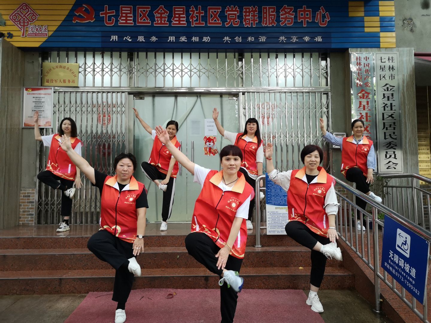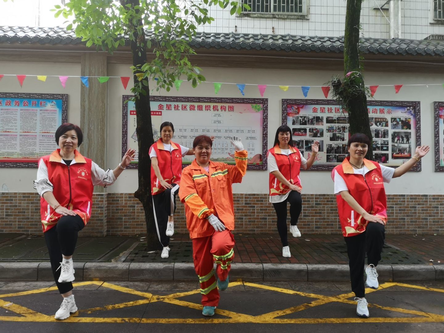 4月26日,金星社区党群服务中心响起了富有节奏感的音乐。由金星社区党委、金星社区妇联、金星社区团委带来的快闪“毽子操”节目正在上演。