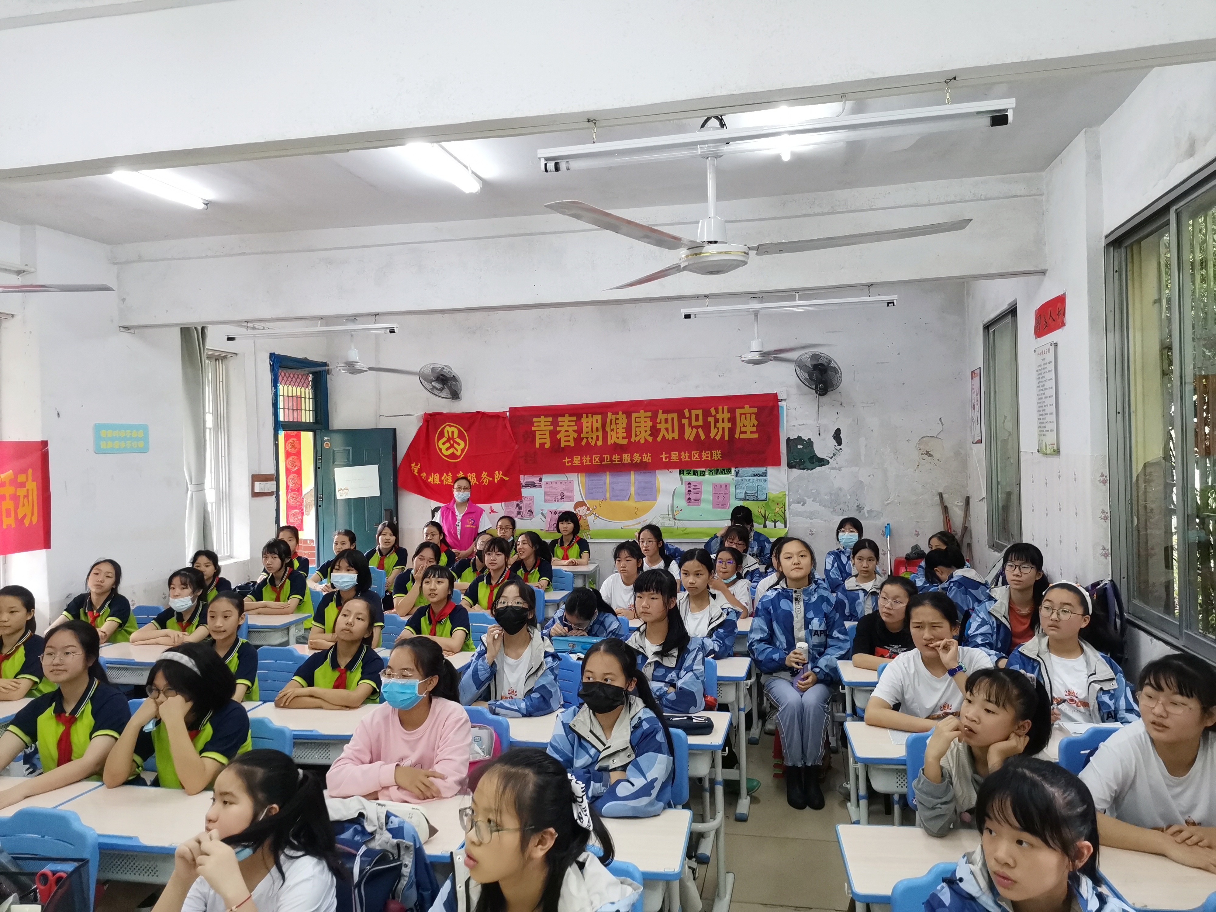 5月10日下午3点10分,七星社区妇联、七星社区卫生服务站组织志愿者、社区卫生服务站工作人员在七星社区龙隐小学举办了一场青春期健康知识讲座,邀请中西给合医院的庞小玲医生和蒋双文医生分为男生、女生两个会场同时进行,从青春期特点、青春期异性交往的特点、青春期异性交往中的六“不”进行了知识普及。告诉在场的青少年进入青春期生理、心理发生变化是正常的,作为进入青春期的少男少女不应太过敏感对待身体、心理的变化。进入青春期应对自己的身体健康要更加关注与了解,所以大家应该积极参加有益的活动转移自己的注意力,或者向老师同学朋友家长倾诉等合理的方式解决烦恼。