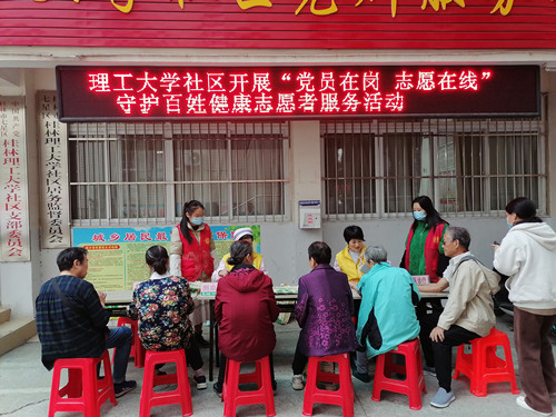 为提高社区居民的健康意识,倡导居民健康生活方式,2022年11月15日,理工大学社区开展“党员在岗 志愿在线”守护百姓健康志愿者服务活动。