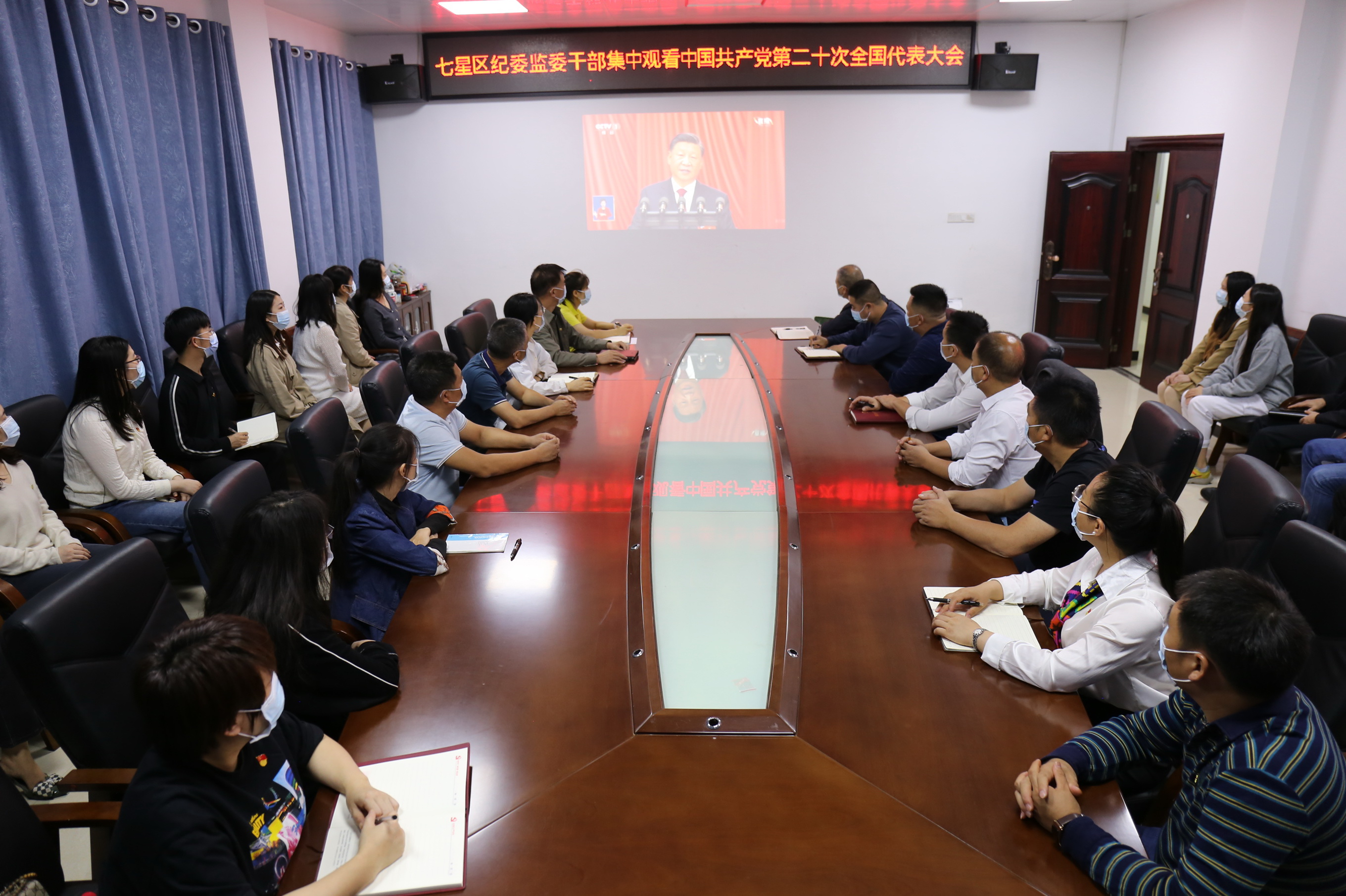 10月16日上午10时,中国共产党第二十次全国代表大会在北京隆重开幕。习近平总书记代表第十九届中央委员会向大会作报告。七星区纪检监察干部满怀喜悦,收听收看了开幕会直播盛况。大家纷纷表示,将把学习宣传贯彻党的二十大精神作为首要政治任务,迅速掀起学习热潮,带头抓好贯彻落实,同时充分发挥监督保障执行、促进完善发展作用,不断开创全面从严治党、党风廉政建设和反腐败斗争新局面,为推动全区纪检监察工作高质量发展作出新的更大贡献。