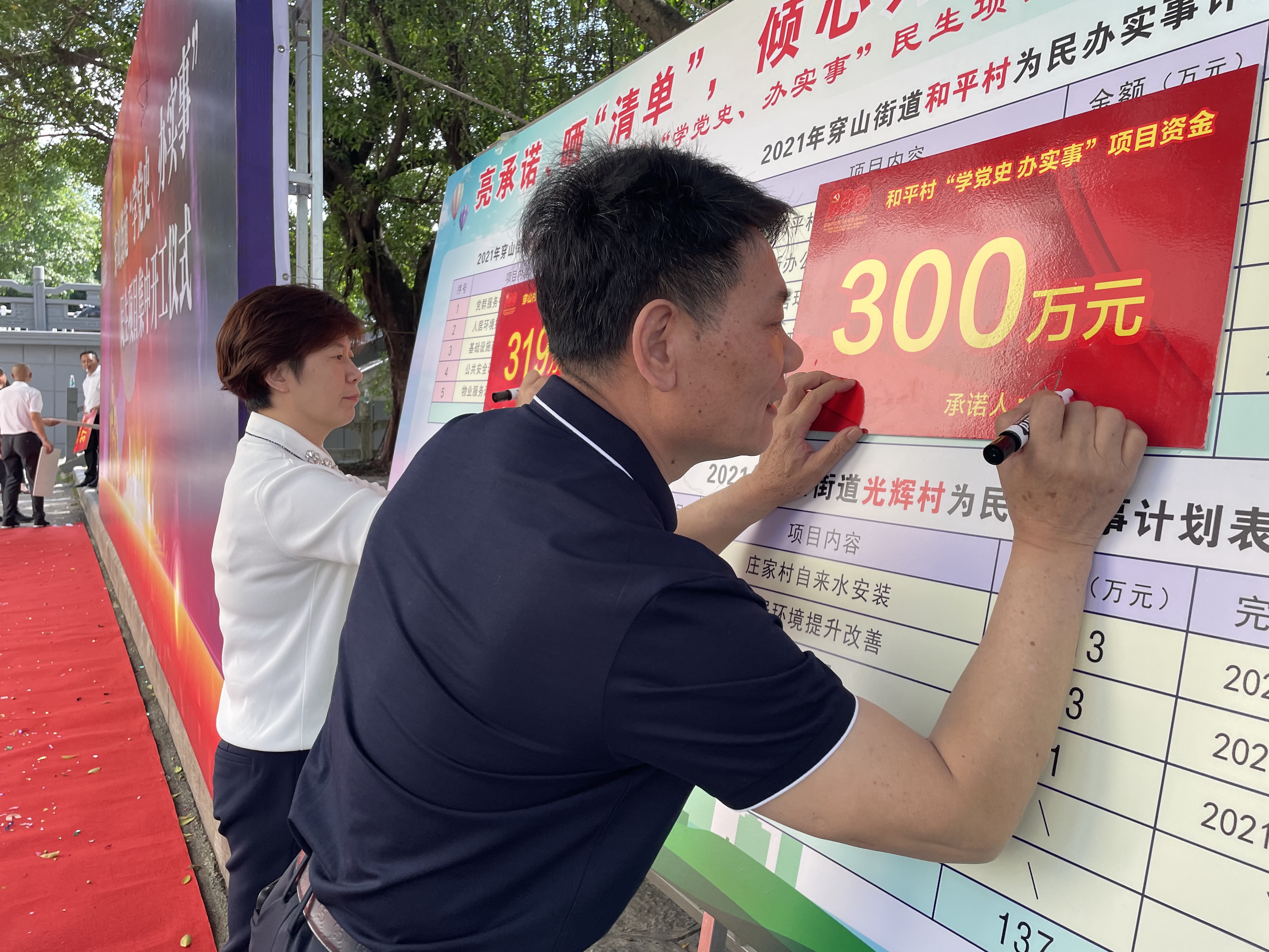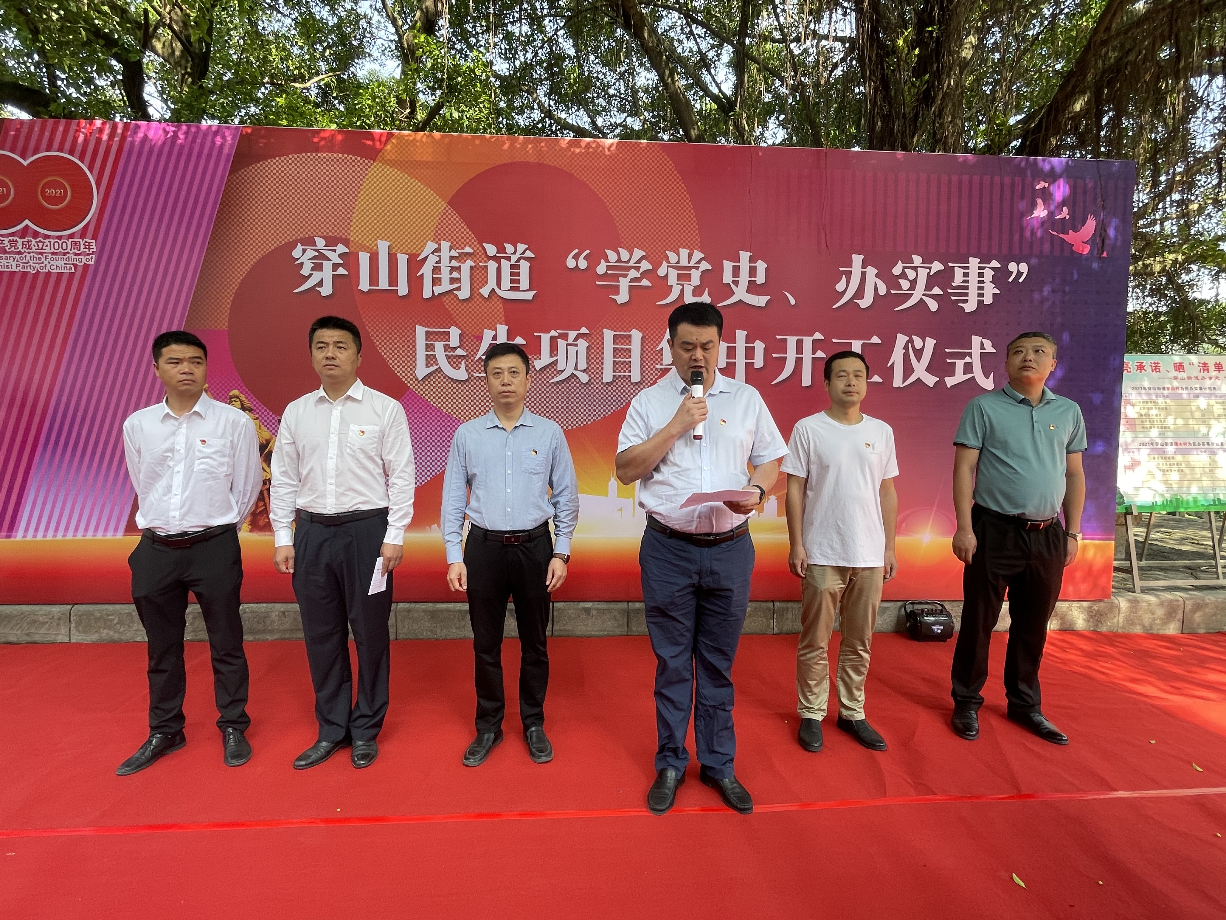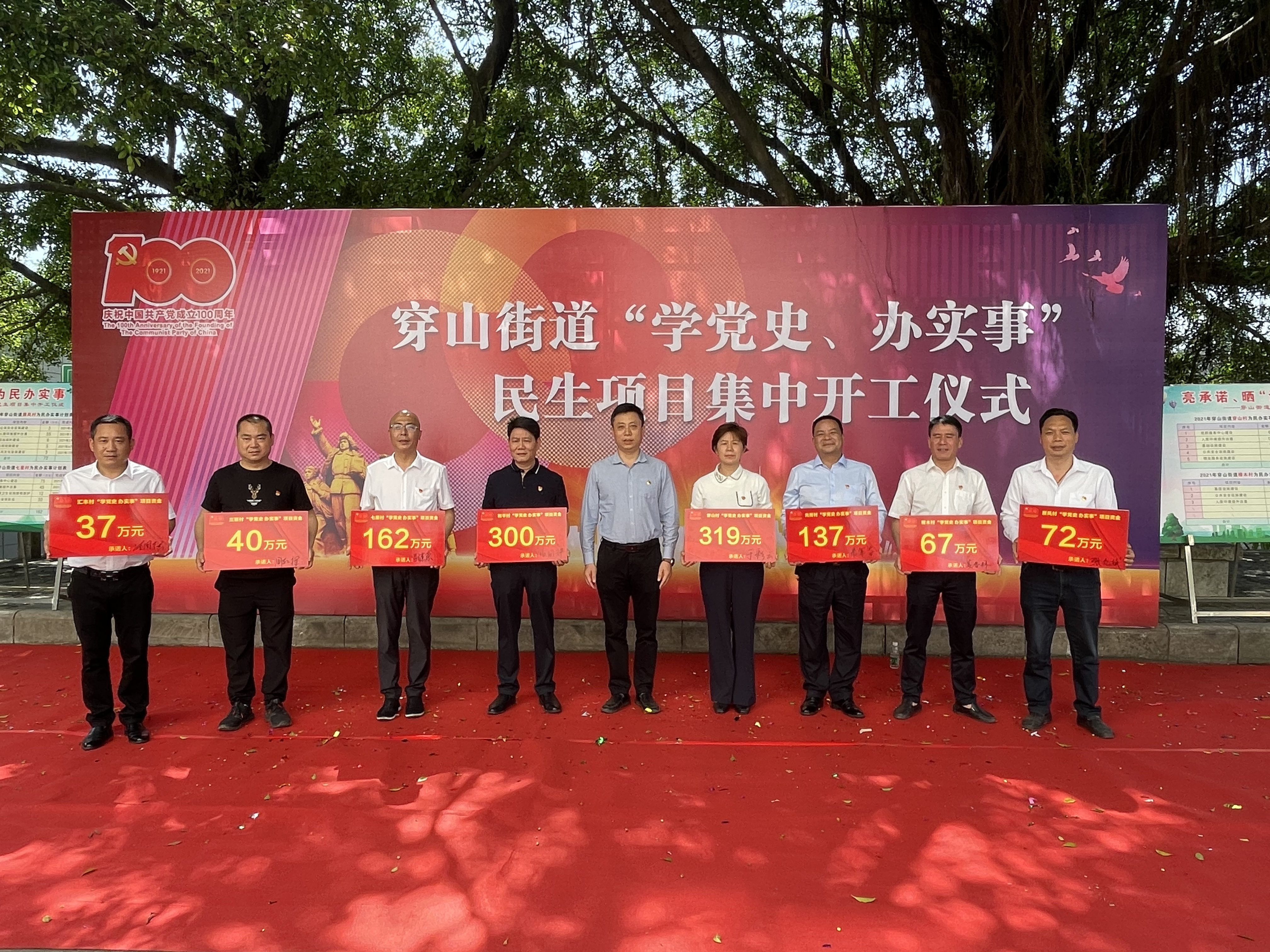 街道工委书记熊波浪在讲话中指出,穿山街道以此次“亮承诺、晒“清单”,倾心为民办实事”集中开工仪式为契机,坚持把开展党史学习教育同服务“振兴乡村”战略助推穿山经济社会高质量发展相结合,通过“问计于民、问需于民、问政于民”聚焦群众需求,进一步整合资源、搭建平台、发挥优势、精准服务,以党史学习教育引领“为民办实事”项目走深走实,当好项目服务的“店小二”,同时各村向辖区群众庄重承诺,项目资金取之于民用之于民,直接投入到振兴乡村、产业发展、水利交通等各个领域,与群众直接相关的民生项目,全面接受群众监督,用实际行动践行学党史、悟思想、办实事、开新局。