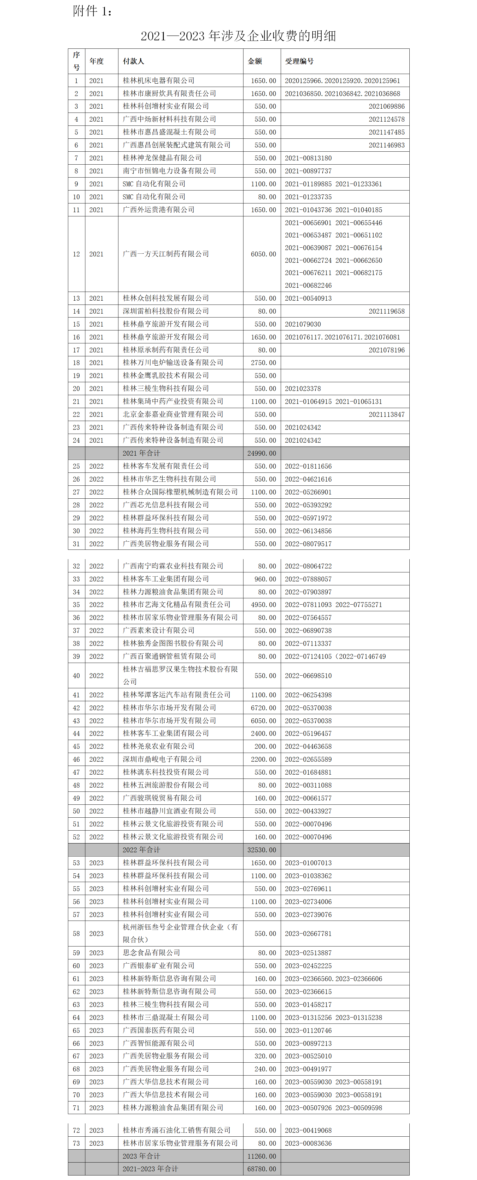 2021年至2023年期间在桂林市不动产登记和房产交易中心办理不动产登记业务的企业(见附件),根据相关审计部门意见,涉及的企业(明细见附件)可自行根据《关于印发中小企业划型标准规定的通知》(工信部联企业〔2011〕300号)文件的划分标准,针对办理业务时企业涉及行业资产总额、营业收入、从业人员等标准自行判定是否属于小微企业,企业自愿做出承诺的,请于5月30日前向我中心提交《小微企业免缴不动产登记费承诺书》及银行开户许可证复印件(盖公章),申请退不动产登记费。提交材料地址为:桂林市象山区中山南路88号不动产中心一楼1号收费窗口。