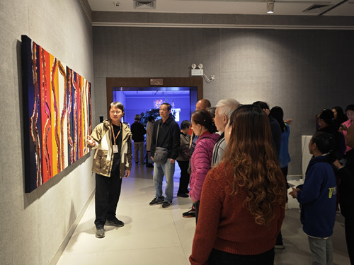 11月19日,七星区五通社区残疾人走进桂林美术馆享受了一场文化盛宴。这场文化盛宴来自于桂林移动美术馆“关爱残疾人”文化惠民品牌项目,为残疾朋友们带来了“多元新镜界——第二届广西实验艺术双年展”和“海岱俊峰·山东优秀中青年书法篆刻家精品展”两场艺术家导览公教活动,以及非遗文化“版上印痕”版画拓印体验和趣味集章活动。