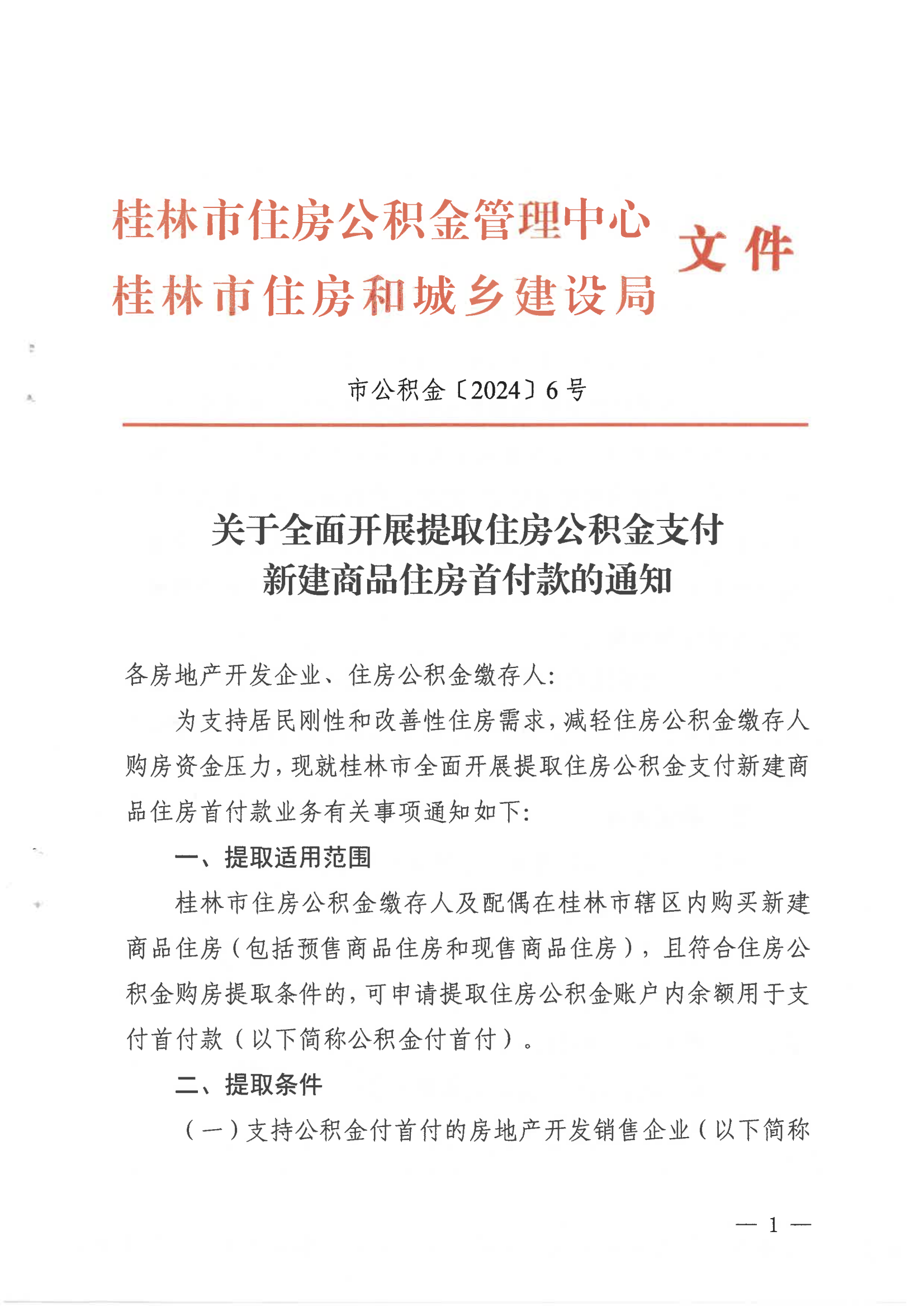 关于全面开展提取住房公积金支付新建商品住房首付款的通知(市公积金〔2024〕6号)