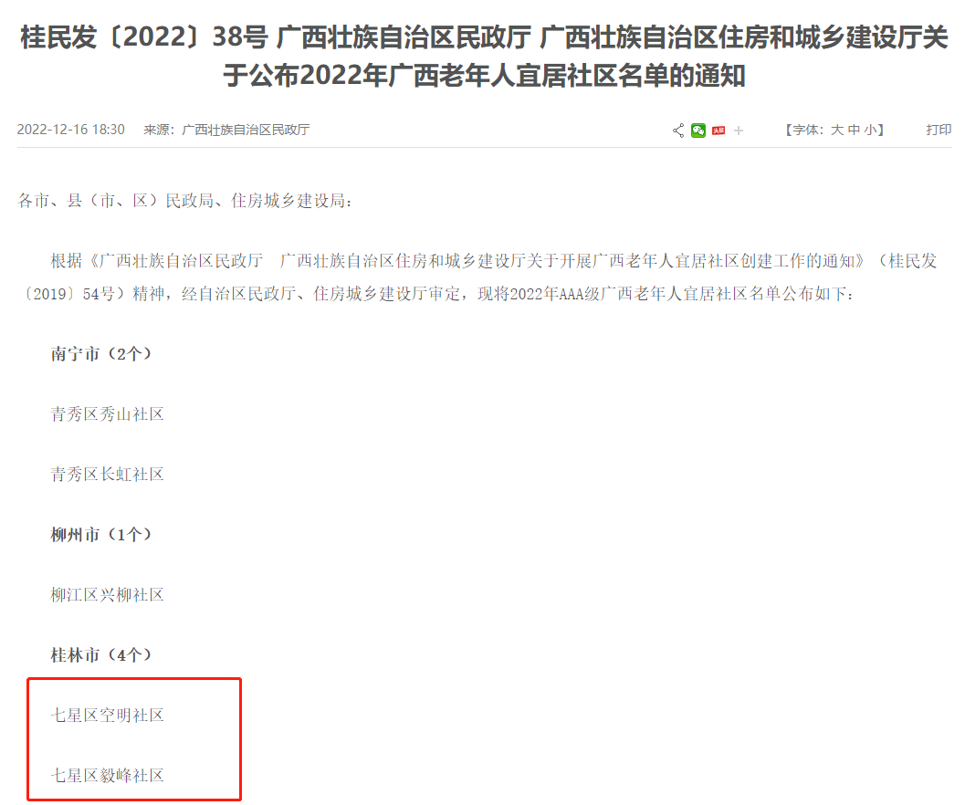 前段时间,经自治区审定,漓东街道空明社区、毅峰社区双双被评为AAA级广西老年人宜居社区。在漓东街道“党建铸魂 服务人民”的理念下,空明社区、毅峰社区以满足老年人需求为工作出发点和落脚点,力求打造出情系百姓、配套齐全、服务完善、生活便利的老年宜居社区。