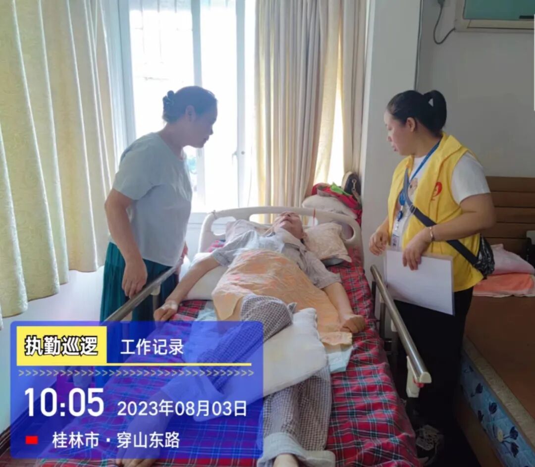 “我老伴瘫痪在床,动不了,眼睛都睁不开,多亏了你们每年上门来帮忙认证,实在太感谢了。”家住技师学院宿舍小区的黄阿姨感激的说道,原来其丈夫李仁强前几年因意外摔伤导致瘫痪在床,处于卧床全陪护状态,完全失去自理能力,自从丈夫退休关系从单位转到社区后,3年来,社区网格员都会在每年8月初时,带上相关材料上门为其进行养老保险资格待遇特殊认证,届时,家属只需拿着社区盖好章的认证资料交至桂林市社保中心审核就可完成当年社保认证。