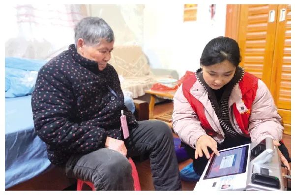 穿山街道工作人员为行动不便的老人上门进行养老保险资格认证
