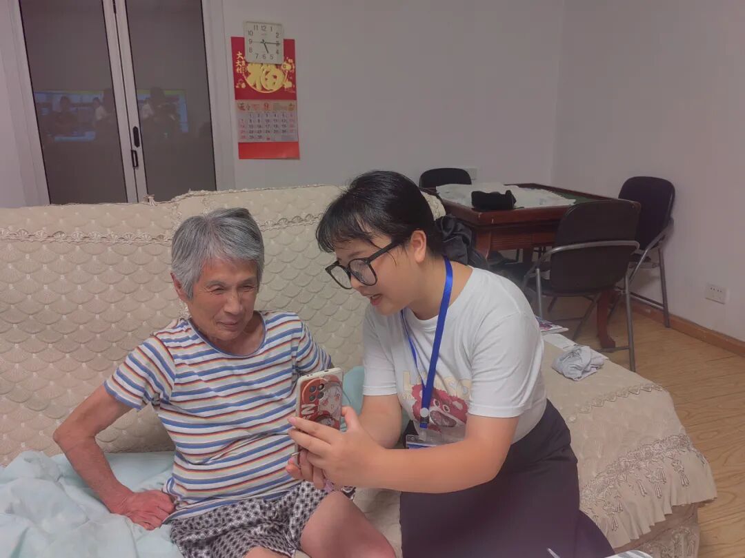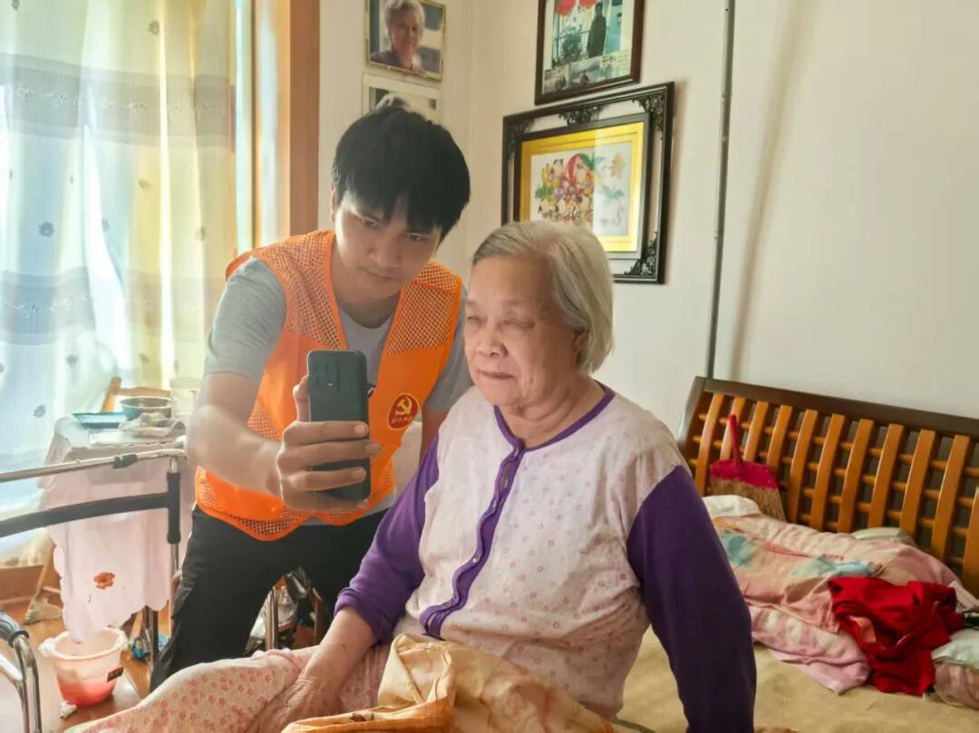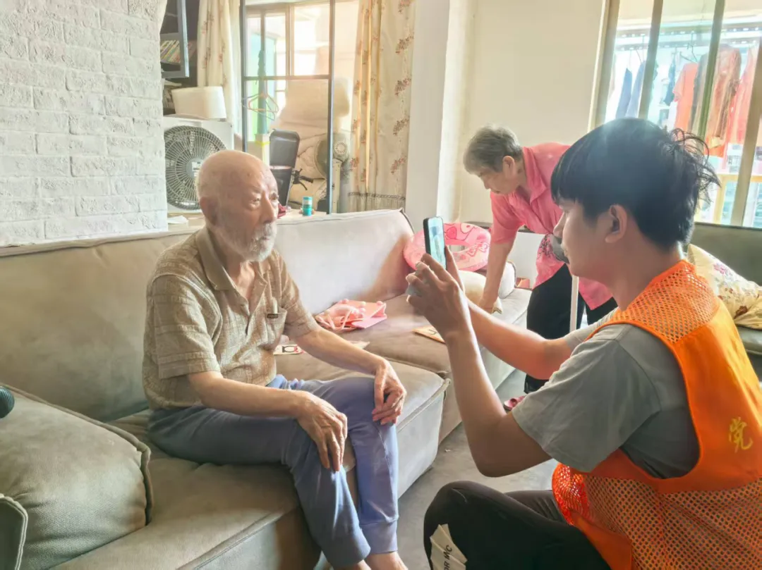 认证过程中,工作人员耐心地为老人拍照、登记信息,同时向老人介绍养老补贴、医保报销等惠民政策。完成认证后,工作人员陪老人聊聊天、帮忙做些家务,细心询问他们的身体近况和生活需求。“太感谢社区了,辛苦你们跑一趟,喝杯茶再走吧!”85岁的独居老人粟爷爷热情地招呼工作人员。