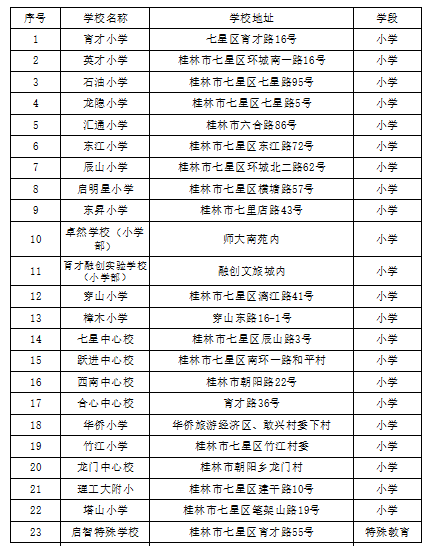 七星区公立小学汇总表