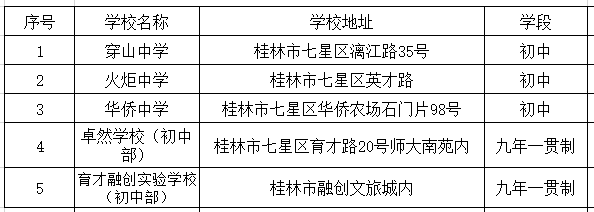 七星区公立初中汇总表