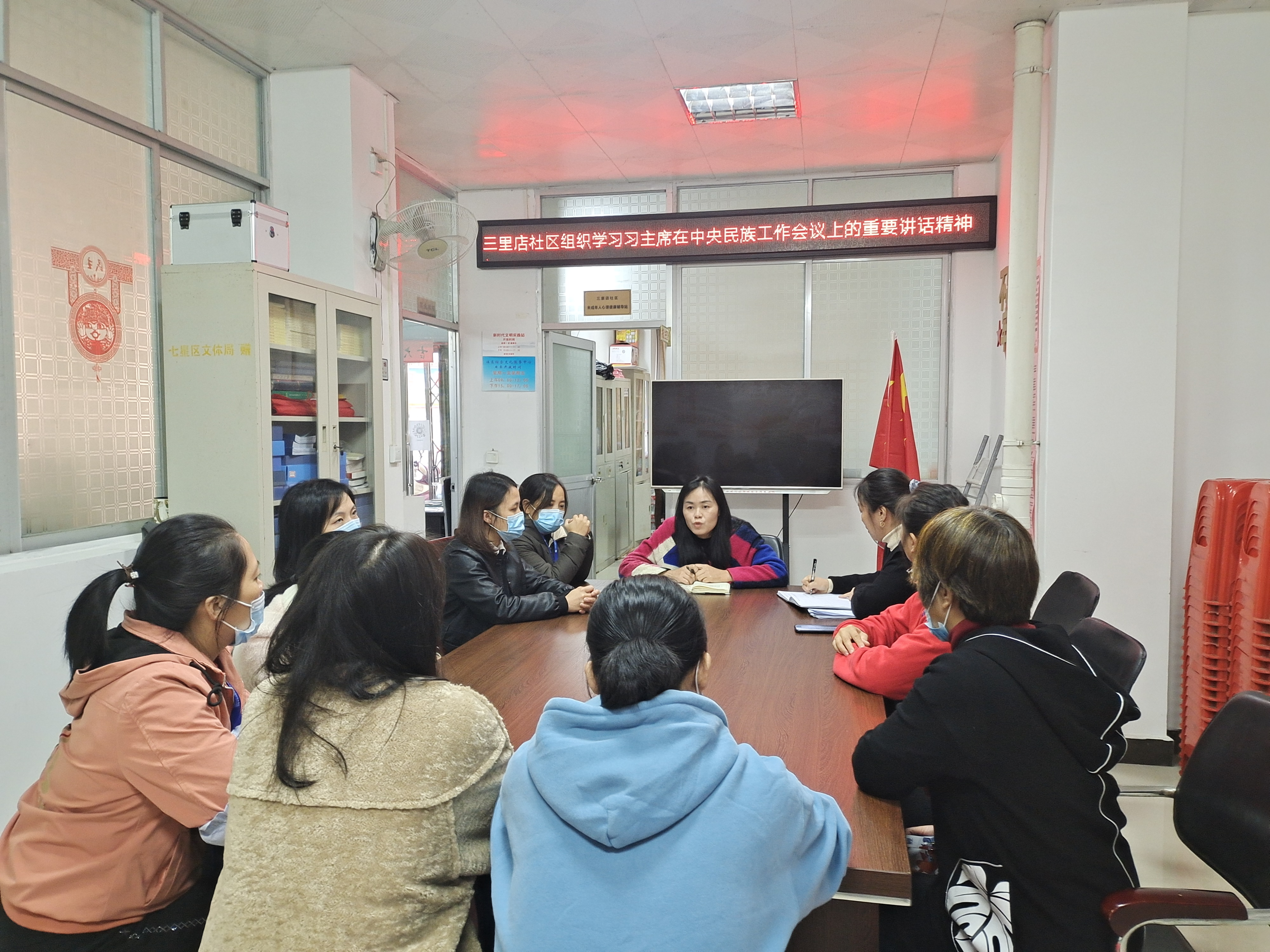 10月25日,三里店社区组织全体党员干部集中学习习近平总书记在中央民族工作会议上的重要讲话精神。
