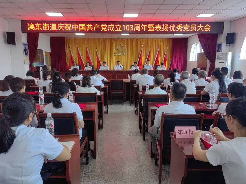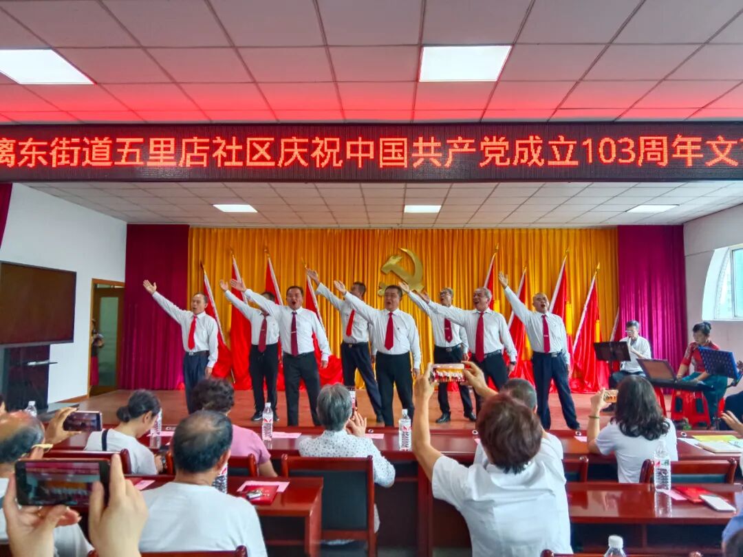6月22日上午,漓东街道五里店社区在漓东街道六楼会议室隆重召开庆祝中国共产党成立103周年暨“七一”表扬大会。