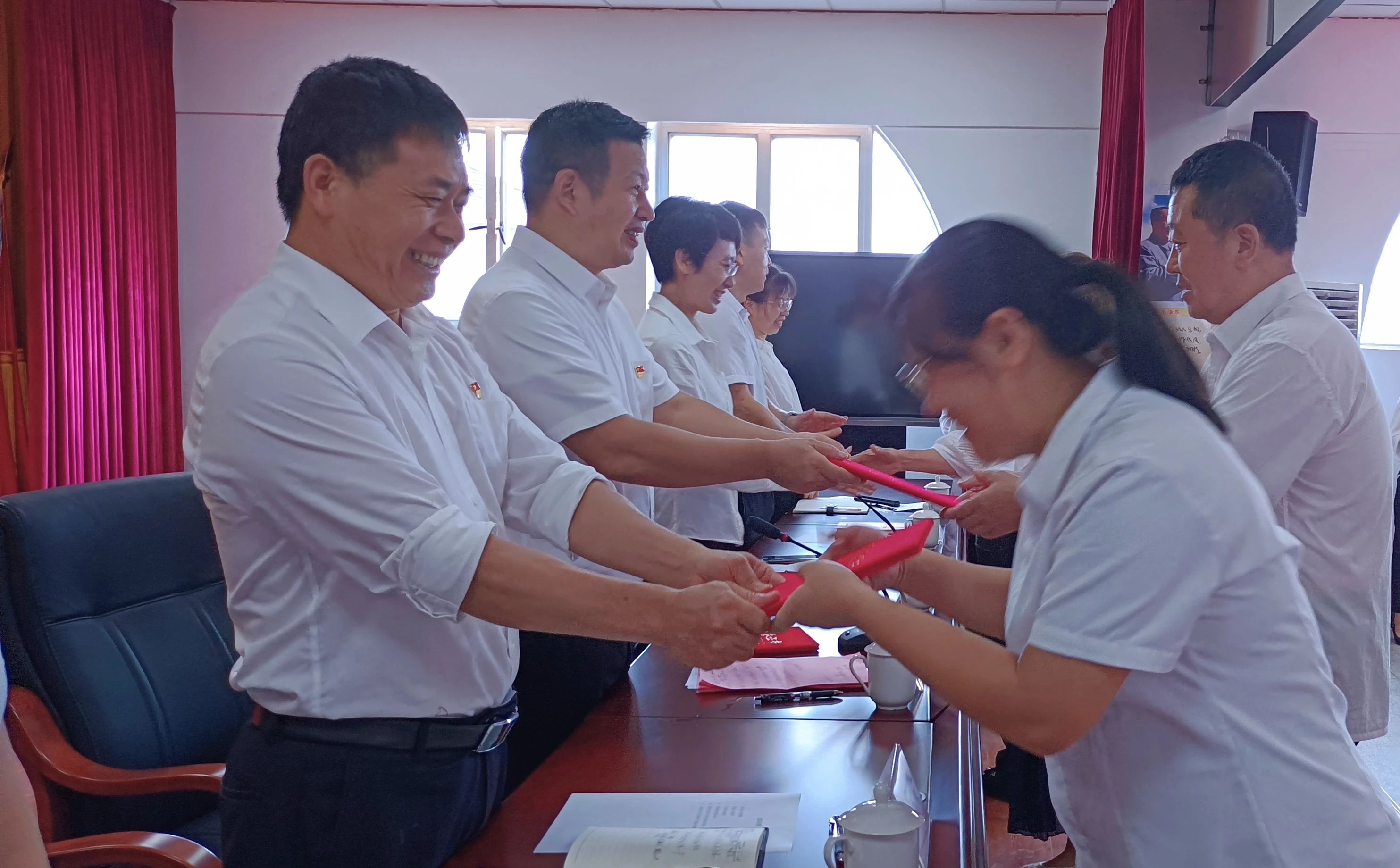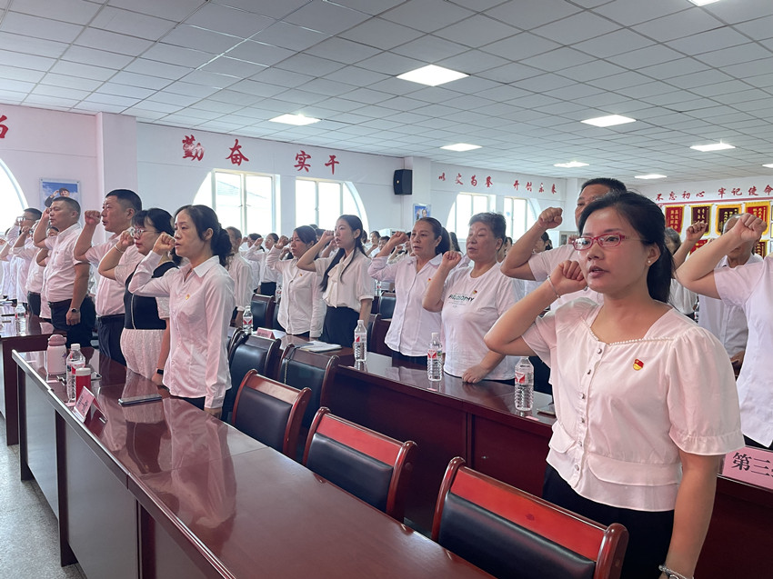 面对庄严的党旗,全体党员神情肃穆,举起右手,在党工委书记陈小伍的领誓下,重温了入党时的铮铮誓言:“我志愿加入中国共产党,拥护党的纲领……随时准备为党和人民牺牲一切,永不叛党。”每一次重温入党誓词,都是一次精神洗礼,激励党员进一步坚定理想信念,牢记初心使命,踔厉奋发、勇毅前行。