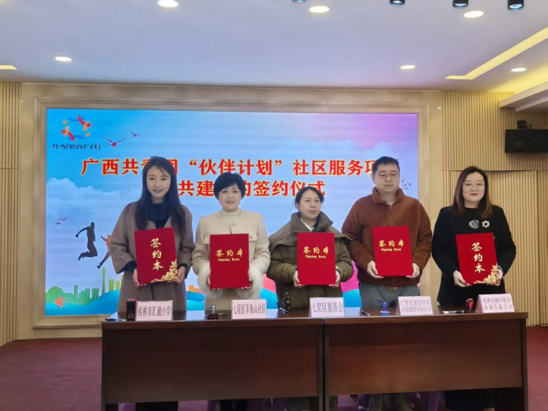 启动仪式上,项目执行负责人、团区委书记详细介绍了“伙伴计划”项目背景及“伙伴领航站”服务内容。甘泉荟团支部、七星区慈善会、羊角山社区、丽沙教育咨询团支部、汇通小学等5家单位现场签订合作协议,共同构建“家校社”联动服务网络。
