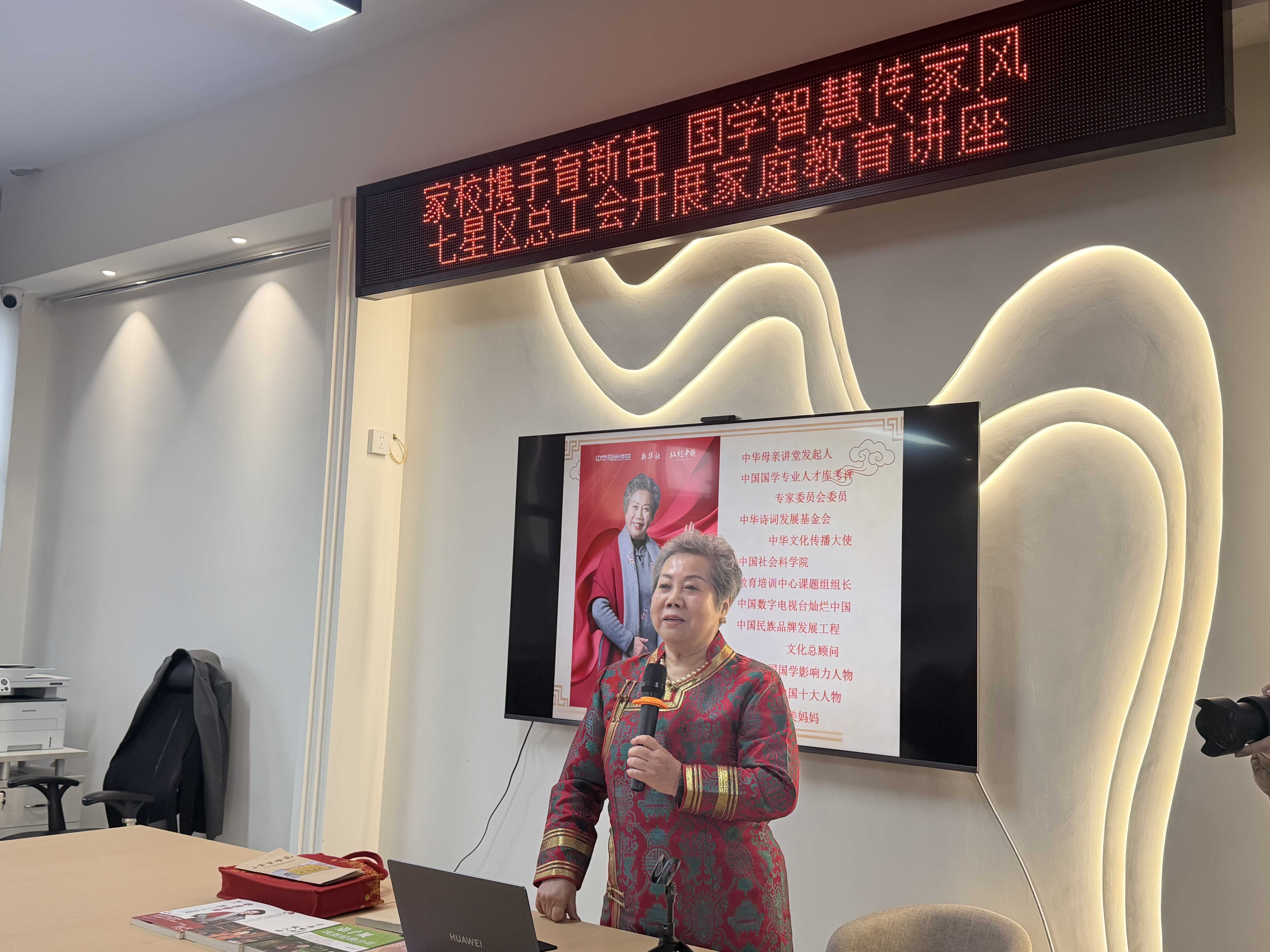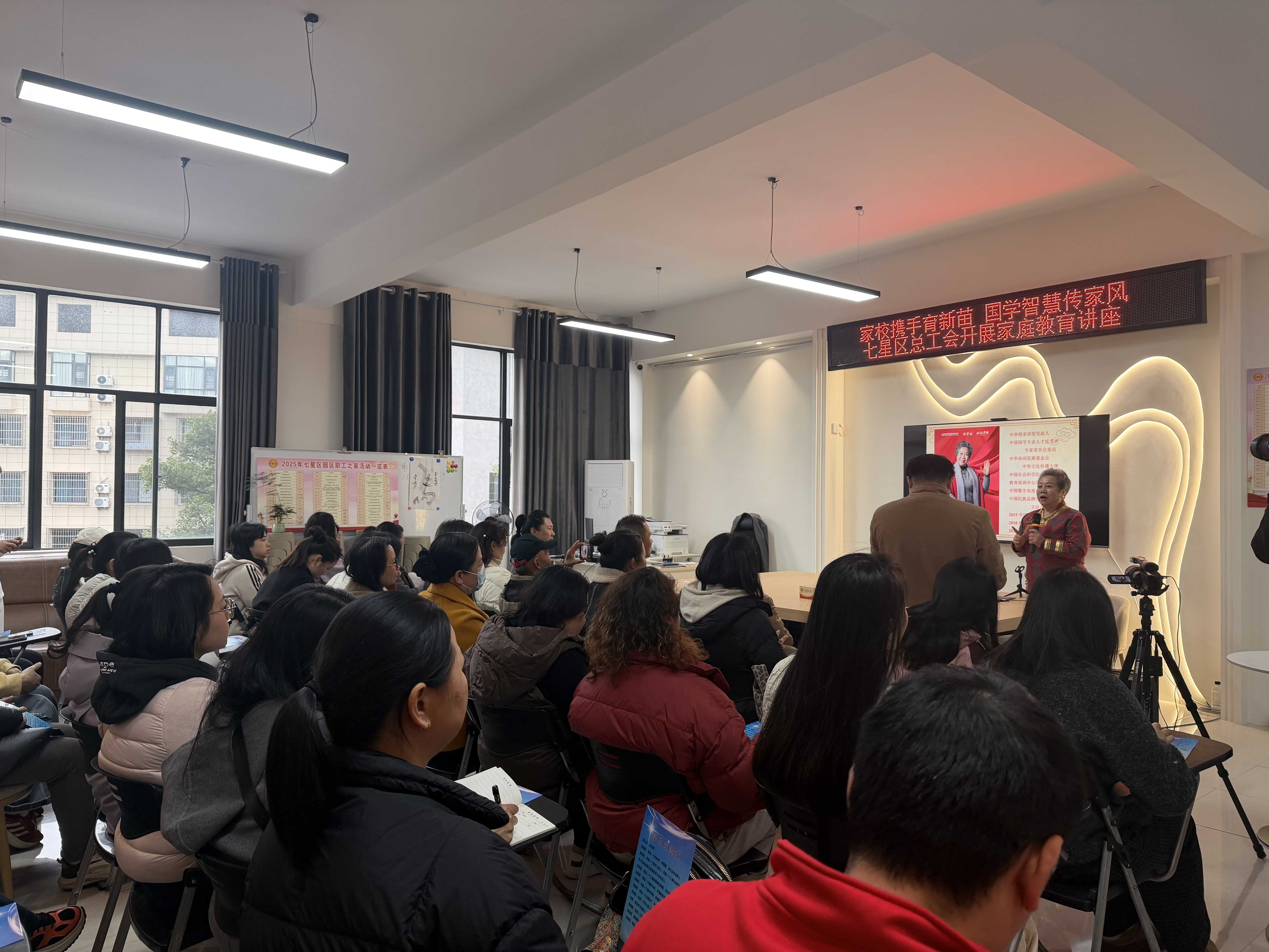 3月19日,七星区总工会在创意产业园区职工之家,成功举办了一场以“国学智慧”为钥、以“家风传承”为核的家庭教育公益讲座。本次活动特邀2015年“决策中国国学行业影响力人物”、2019年“全国最美妈妈”刘冰担任主讲嘉宾,吸引了园区及周边50余名职工家长参与。