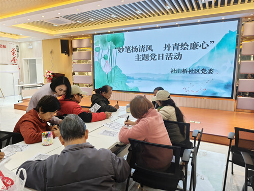 为深入推进清廉社区建设,丰富党员教育形式,3月25日上午社山桥社区党委组织开展了“妙笔扬清风 丹青绘廉心”主题党日活动,将廉洁教育与绘画艺术相结合,让党员们在笔墨丹青中感悟清廉内涵。