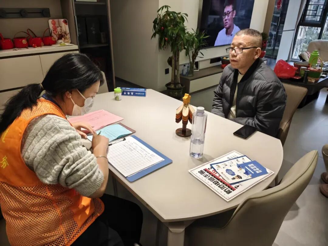 为进一步扩大宣传覆盖面,确保反诈等知识宣传不漏一户、不落一人,志愿者与社区工作人员组成入户宣传小组,带着宣传资料挨家挨户走访。面对在家的居民,工作人员用通俗易懂的话语,讲解反诈及垃圾分类知识,耐心解答居民疑问,同时开展常住人口登记服务,手把手指导居民填报信息;针对未在家的居民,志愿者们贴心在其家门上张贴温馨提示,实现宣传无死角。