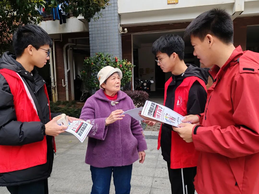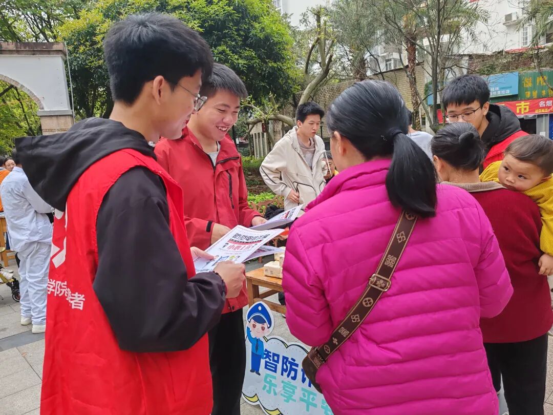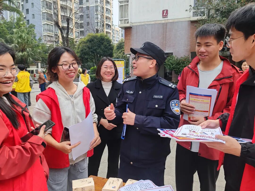 于是“传统宣传+创新形式”的反诈宣传在小区里展开,工作人员、民警和大学生们你一言我一语、互相“较劲”,“社区+民警”的熟面孔与大学生志愿者贴近年轻人思维的青春活力,吸引了小区不少居民驻足了解,并向志愿者咨询自己遇到过的可疑情况。