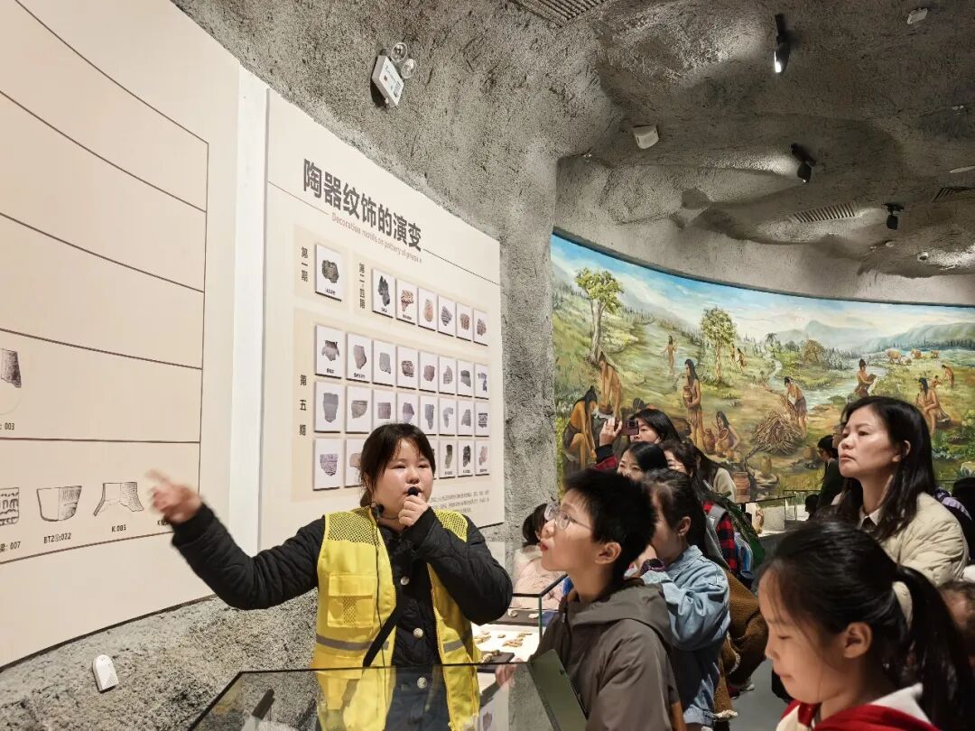 在公园讲解员的带领下,大家有序参观了甄皮岩遗址洞穴、文物陈列区等,详细了解了新石器时代早中期遗址的历史渊源、考古发现和文化内涵,感受桂林史前文明的魅力,沉浸式体验先民的生活场景,在潜移默化中传承历史文化,拓宽文化视野。
